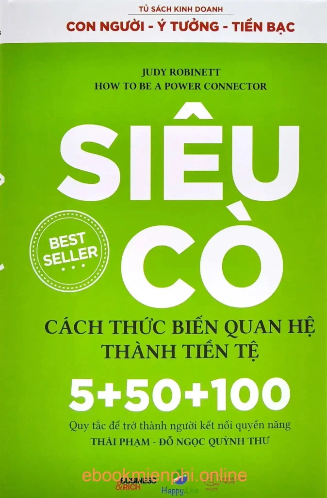 “Siêu Cò – Cách thức biến quan hệ thành tiền tệ” của Judy Robinett là cuốn sách hướng dẫn xây dựng và phát triển mạng lưới quan hệ chiến lược, nhằm giúp bạn tận dụng hiệu quả các mối quan hệ để thành công trong kinh doanh và cuộc sống. Cuốn sách chia sẻ các chiến lược cụ thể như xác định và duy trì các mối quan hệ chất lượng, tạo ra các đề xuất giá trị hấp dẫn, gia tăng vốn xã hội, sử dụng kỹ năng giao tiếp tinh tế cùng các công cụ truyền thông xã hội để mở rộng và làm sâu sắc hơn mạng lưới quan hệ cá nhân.